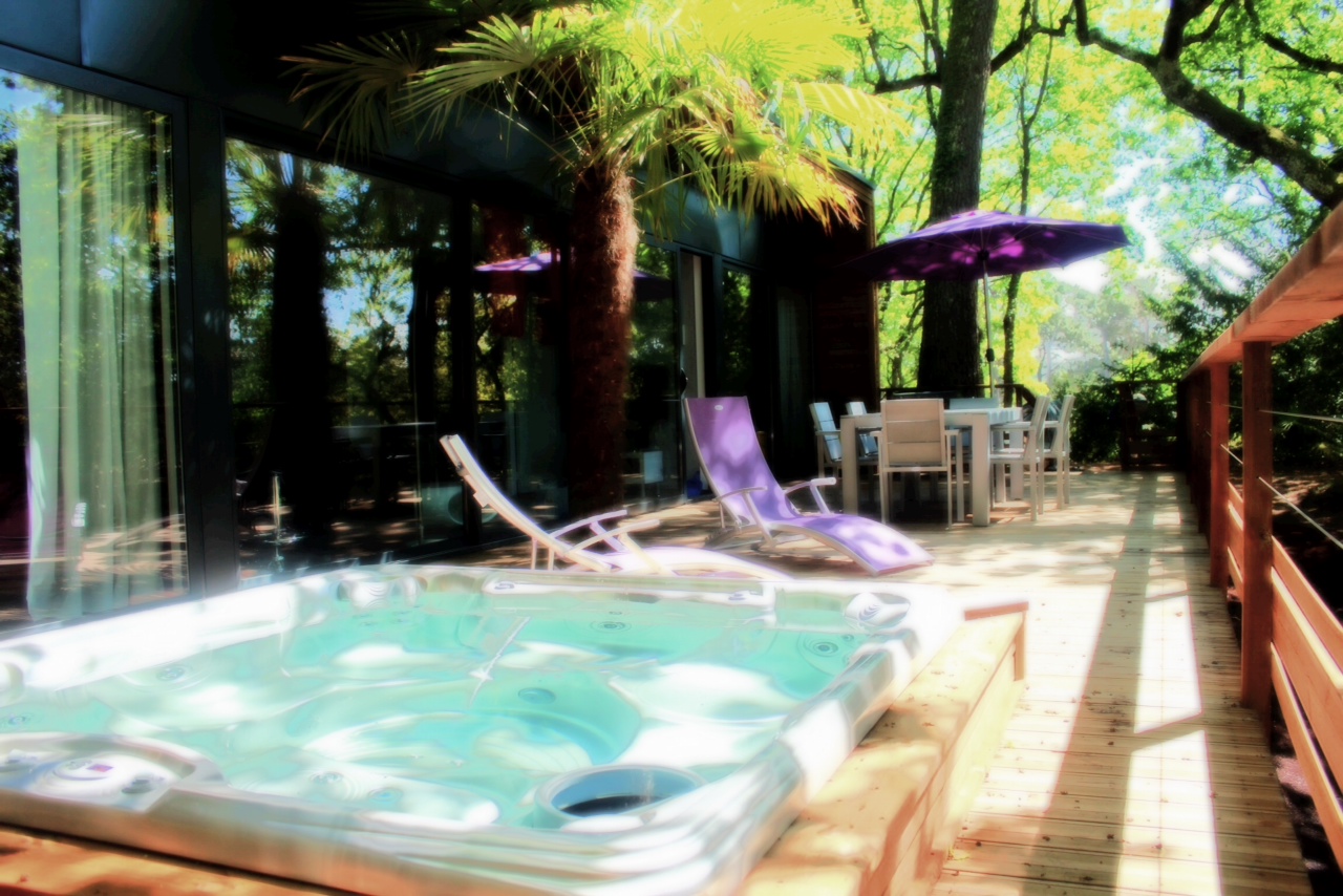 belle maison atypique dans un parc , bien équipée, baignoire balnéo extérieure, vélos sur place;